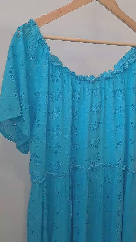 Robe longue bohème en broderie anglaise 100% coton